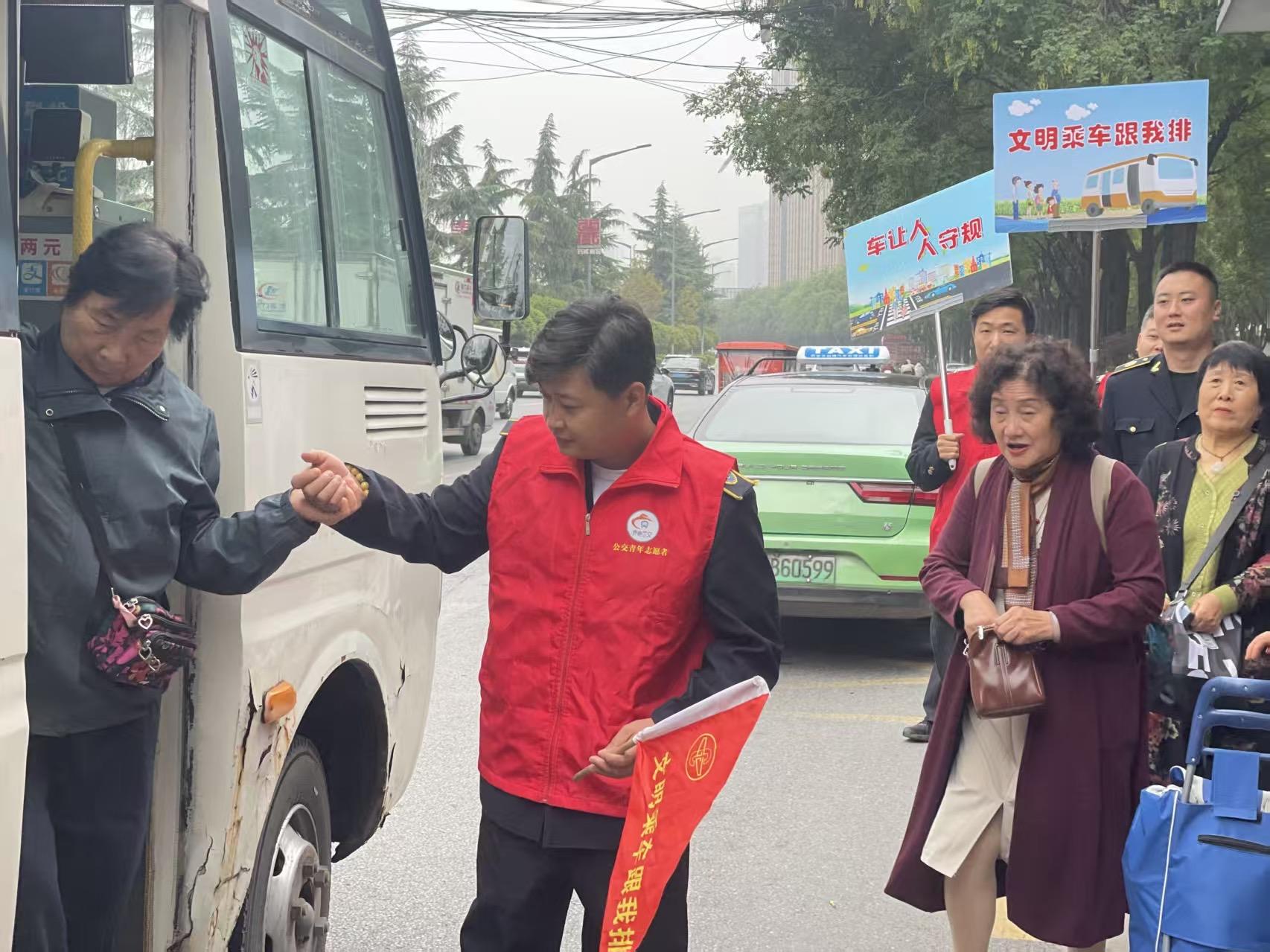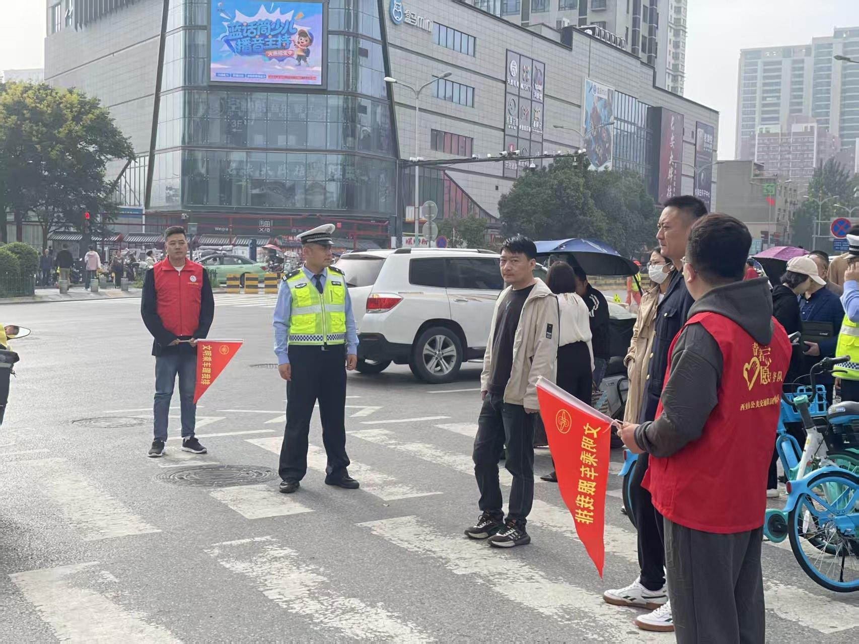 活动当天,志愿者引导市民安全通过斑马线至站台,划分“排队等候区”并持“按序上车”牌引导;站点周边路口及斑马线两端布警,疏导社会车辆、纠正机动车不礼让行人等违法行为,同时针对市民横穿马路习惯宣讲交通安全,发放《文明出行手册》并讲解事故案例,提醒“宁等三分,不抢一秒”。