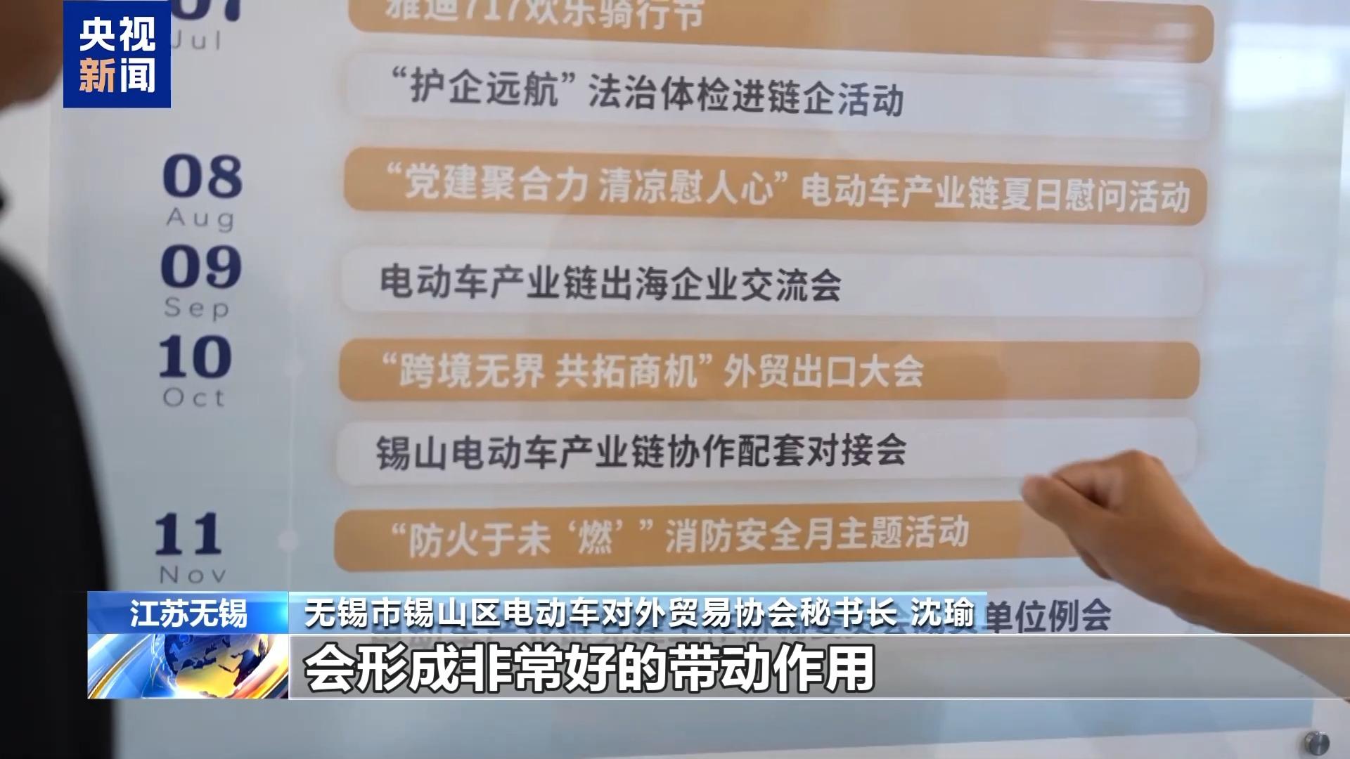 无锡市锡山区商务局外经贸科负责人 顾书豪:当时有一家企业,他们想要出口到土耳其。但是土耳其当地有一个专门对电动车的认证,企业之前没有办过,也不知道该找谁办。我们知道这个消息之后,推荐了一家资质比较好的第三方机构,来帮他们解决了这个问题。
