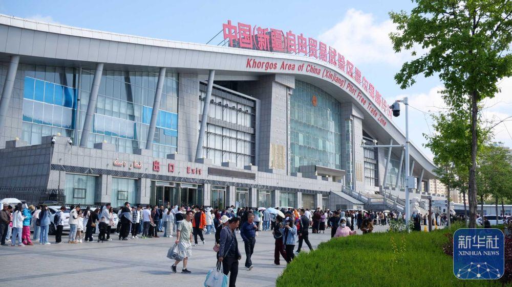 ↑5月2日拍摄的位于新疆伊犁哈萨克自治州霍尔果斯市的中国(新疆)自由贸易试验区霍尔果斯片区。新华社发(冯海森摄)