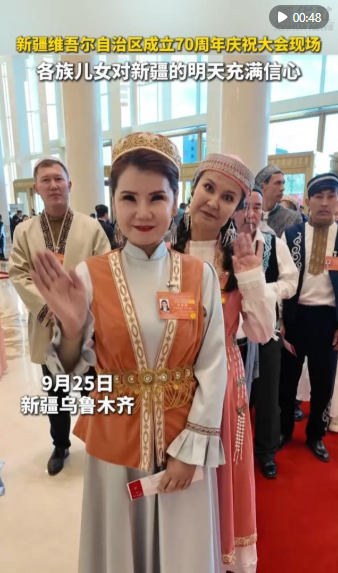 新疆维吾尔自治区成立70周年庆祝大会现场,各族儿女对新疆的明天充满信心。