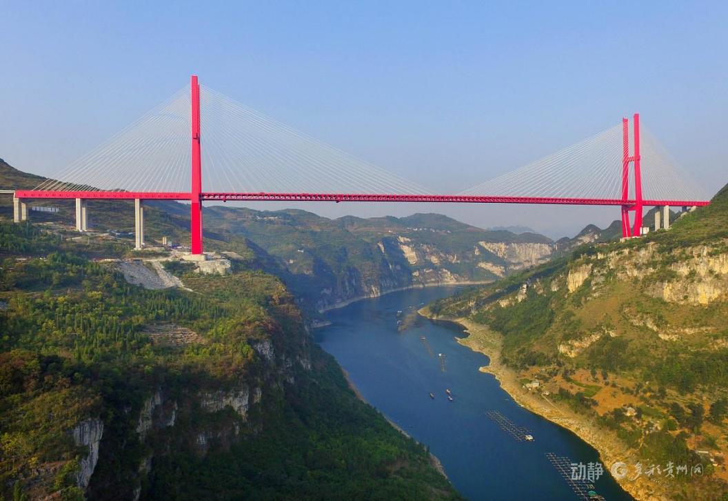 位于贵州省与云南省交界处,大桥全长1341.4米,因桥面到江面的距离高达565.4米而在当时荣获“世界第一高桥”的称号。大桥的建成通车,使云南宣威到贵州六盘水的车程从此前的5个小时左右缩短为1个多小时。