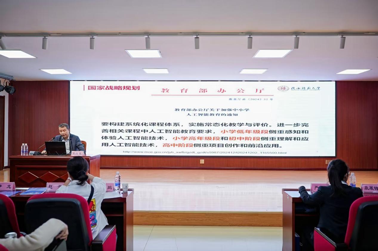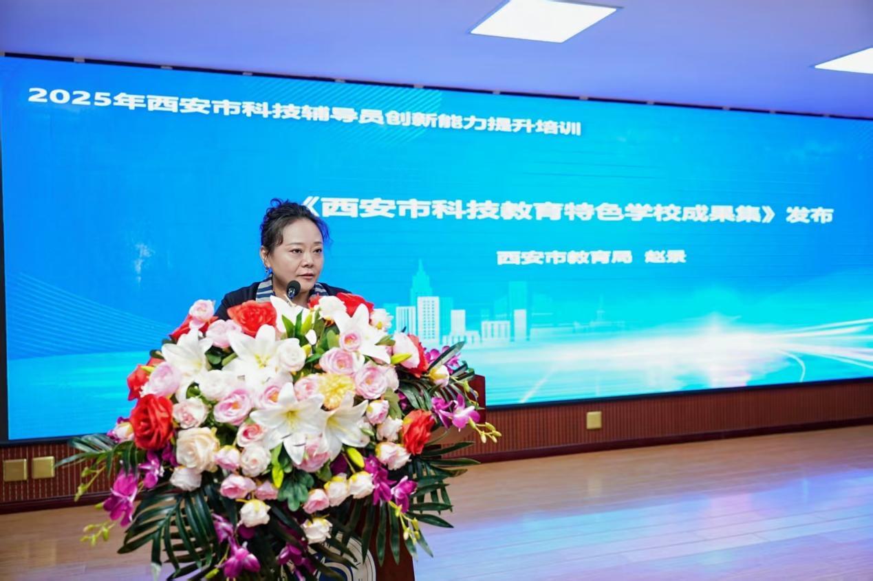 培训期间,陕西师范大学马红亮教授围绕“人工智能:科创教育新赛道”作专题报告,深入分析了人工智能时代科创教育的发展趋势和实践路径。雁塔老科协柏景森、人民教育出版社马鸣、高新逸翠园初级中学曹列彦等专家分别就科技模型活动、AI数字化教学、青少年科技创新大赛指导等主题进行授课。此外,活动现场还发布了《西安市科技教育特色学校成果集》,展示了西安市科技教育特色学校的优秀实践案例。