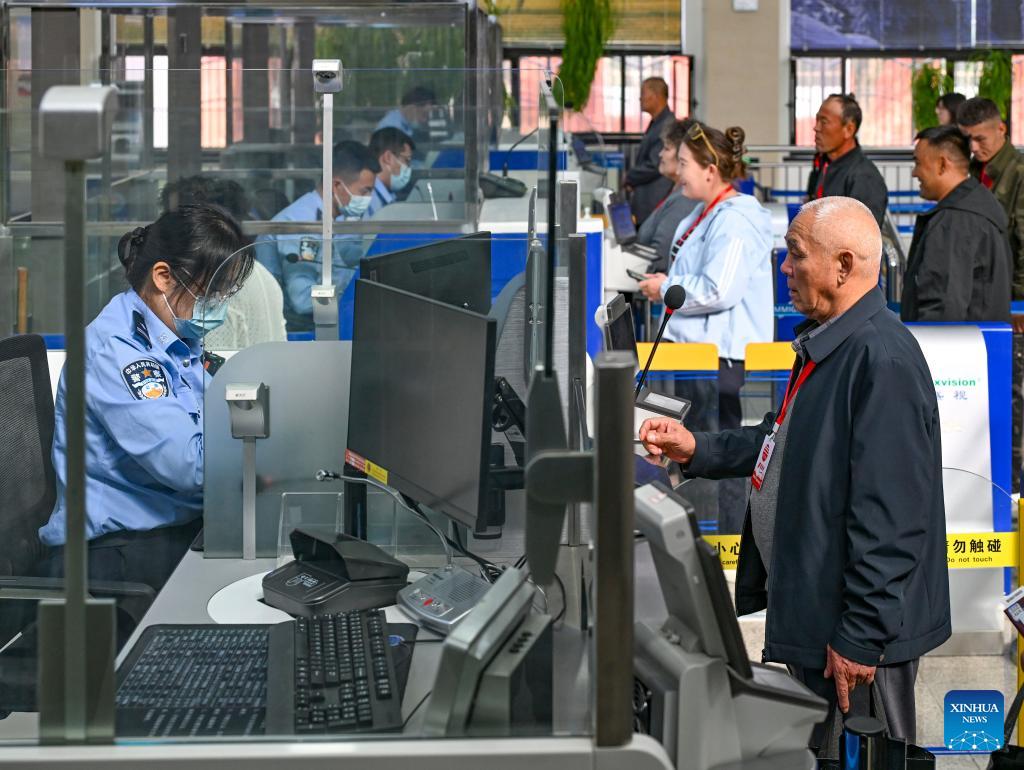 Passengers go through exit formalities at Bakti port in Tacheng, northwest China's Xinjiang Uygur Autonomous Region, Sept. 17, 2025. Xinjiang is seeing increased vitality across the board as the region accelerates its efforts to the construction of the New International Land-Sea Trade Corridor, a key logistics network connecting China's western regions to global markets.