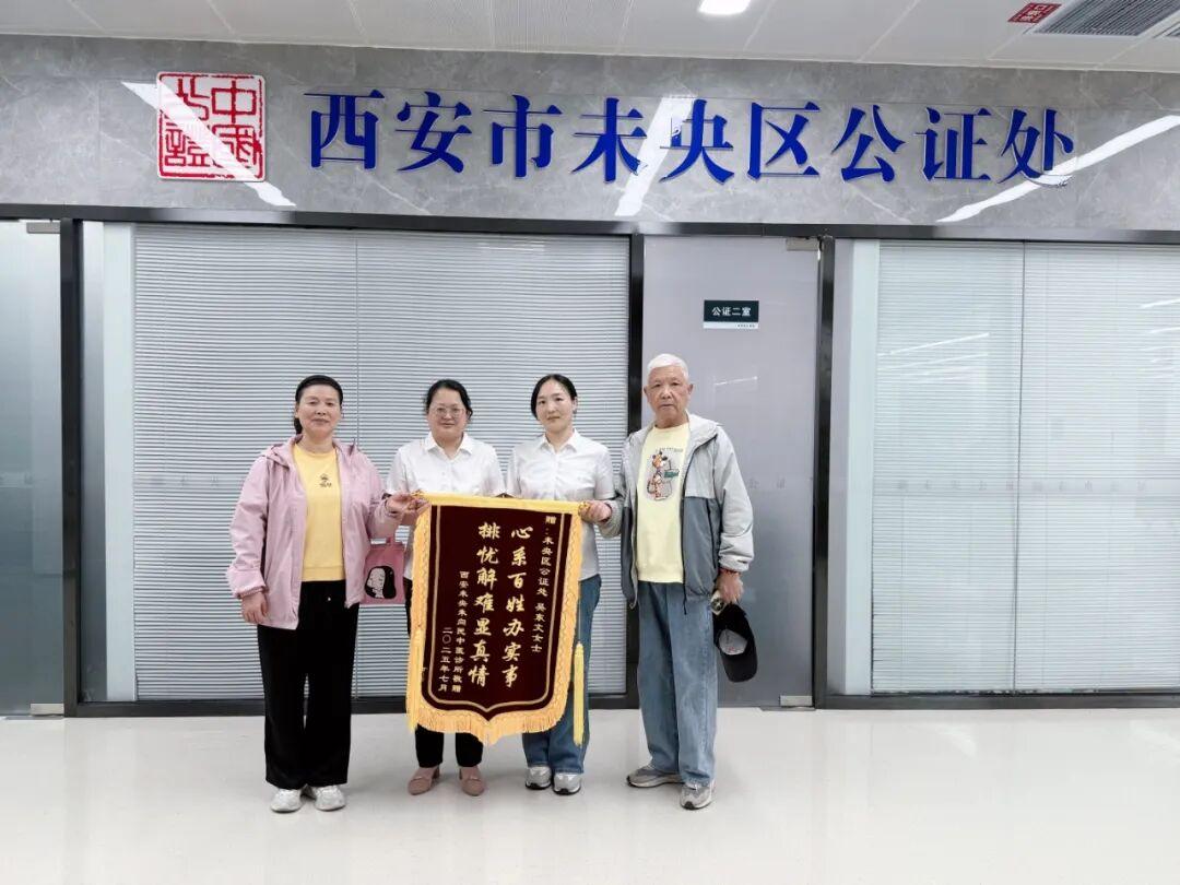 一面锦旗,承载着当事人的信任与感激,也是对公证员工作的肯定与鼓励。 西安市未央区公证处始终坚持以人民为中心的服务理念,积极落实“最多跑一次”“证明材料清单制”等多项减证便民政策,不断提升服务质量和专业水平,为更多群众提供优质、高效、便捷的公证法律服务 。