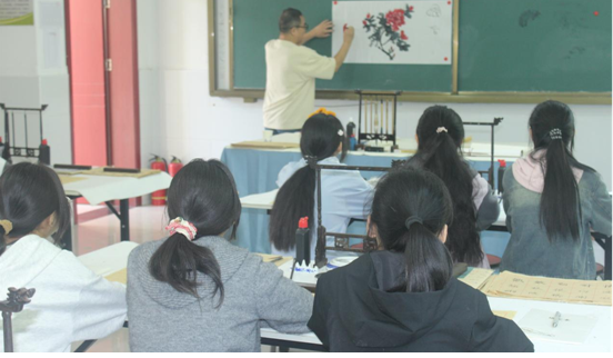 在何家岩九年制学校初中部美术社团活动期间,略阳县老科协高级顾问谭向东先生走进社团教室,向学生现场讲解绘画知识,并挥毫泼墨,引导其学习牡丹等绘画技巧,让学生颇受启发和鼓舞。