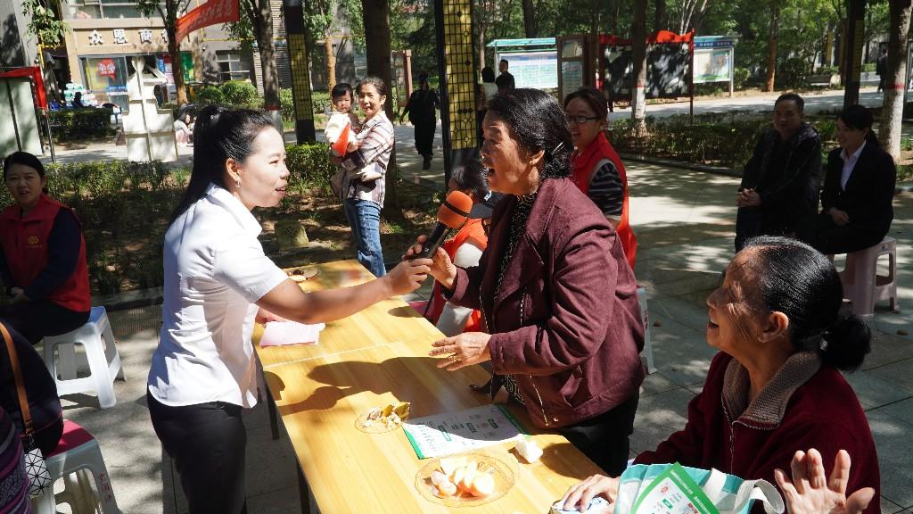 表演间隙,趣味互动环节接踵而至。“双节知识问答”中,志愿者提问:“嫦娥住月亮上的哪个宫殿?”居民张女士立刻高高举手抢答:“广寒宫!”拿到小礼品时,她笑得眼睛眯成了缝。“大小西瓜”游戏更是笑声不断,老人们争先恐后上台参与。