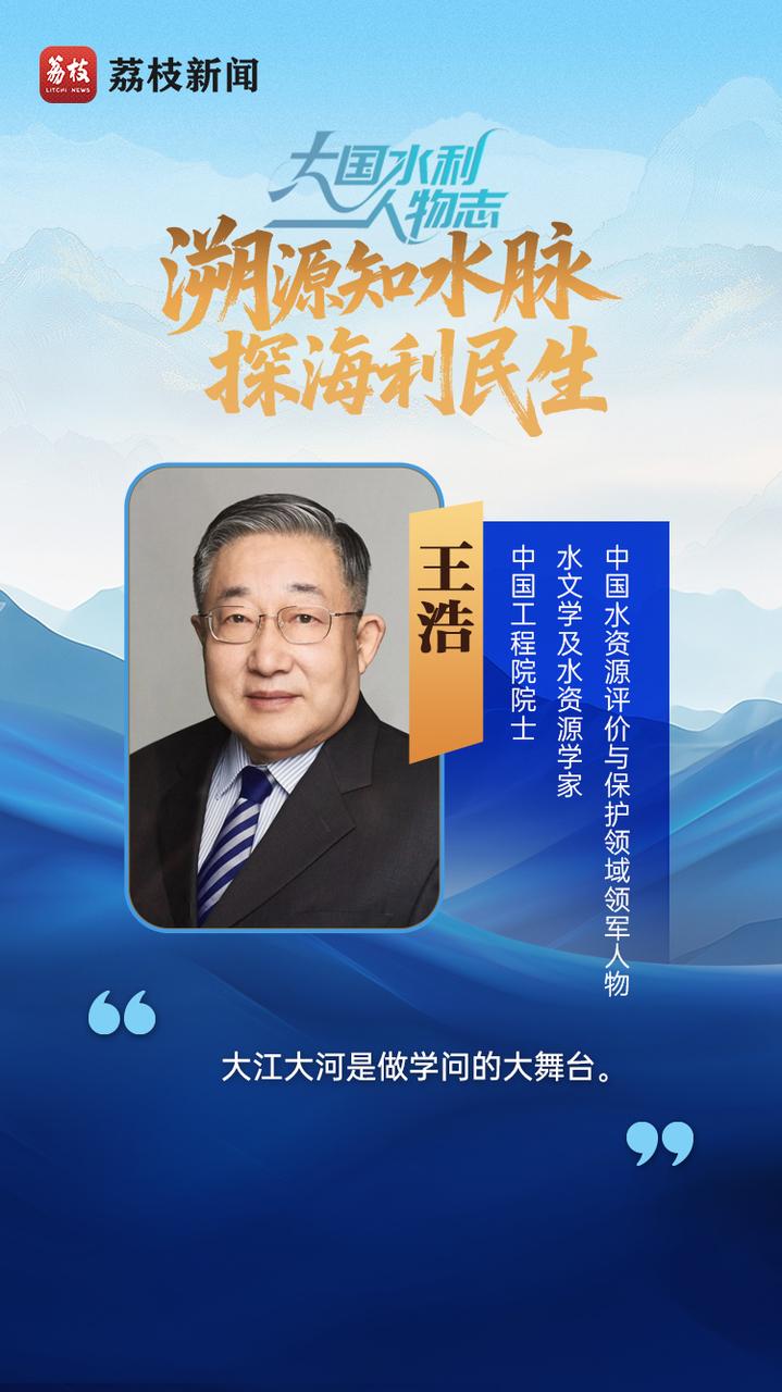 王浩长期从事水文水资源研究。1989年从清华大学水利系毕业后,进入中国水科院水资源所工作。数十年的科研生涯中,他经常一年200多天出差在外,几乎跑遍中国所有的河流湖泊,对每一个水域的情况都了如指掌。他创新研发的多项应用技术在水利、环保、林业等部门得到了广泛应用,有力支撑着南水北调工程、三峡工程等规划与调度运行。他建立了水平衡的海绵城市建设系统科学范式。如今,70余岁的王浩正在推动建设国家水网工程。