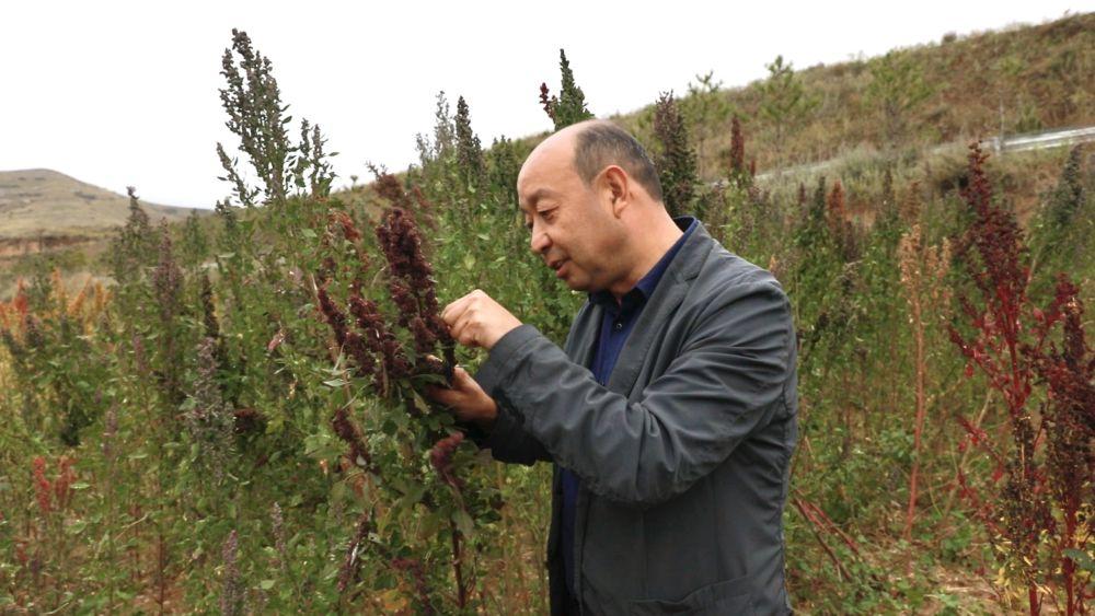 除了检查病害,巩亮军还需评估藜麦籽粒的成熟度和饱满度,他抓起身旁一把藜麦穗,脸上露出些许欣慰的笑容:“你看现在的籽粒,很饱满,基本上已经成熟了,今年藜麦整体的长势还是很好的。”
