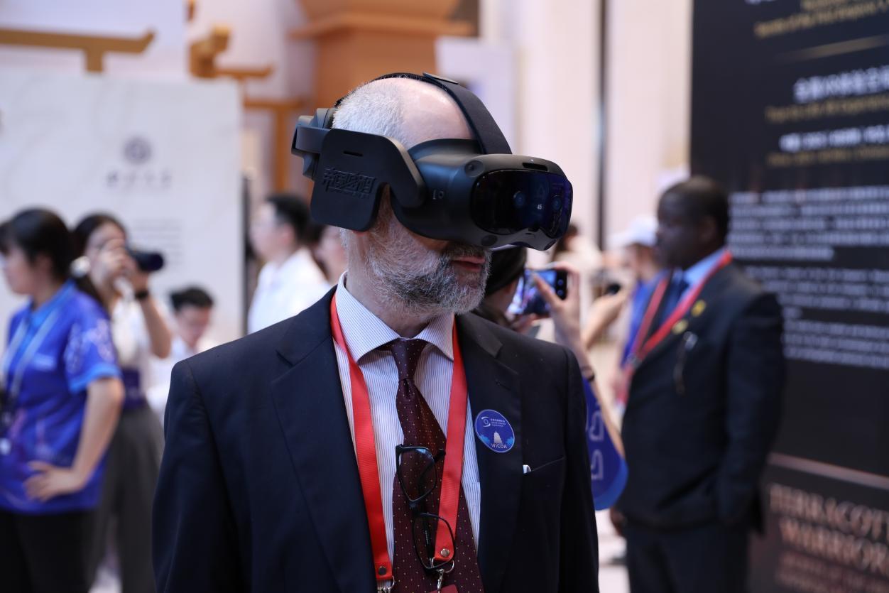 在9月16日举办的世界互联网大会文化遗产数字化论坛上,《帝国密码——秦始皇陵》作为陕文投集团与宏达电(HTC)打造的标杆项目,应邀亮相“兵马俑数字化”联合展位,与全球顶尖机构共同展示中国在文化遗产数字化领域的创新成果。论坛期间,《帝国密码——秦始皇陵》特别推出12分钟精华版XR体验,观众佩戴设备即可“穿越”至两千年前的秦陵地宫,在虚拟与现实的交织中探秘地宫奥秘、触摸文明记忆,沉浸式感受大秦雄风的独特魅力。项目在探索文化和科技融合的有效机制的背景下,全面实践“文博数字化”,用前沿科技让沉睡千年的秦陵地宫“活”起来。