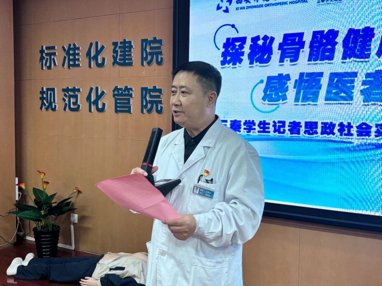 上午9点,三秦学生记者们整齐列队来到医院六楼会议室。活动在热烈的氛围中拉开帷幕。西安仲德骨科医院副院长张国才对师生们的到来表示诚挚的欢迎,并简要介绍了活动流程,再三叮嘱了参观过程中的安全注意事项,温暖的关怀瞬间拉近了与孩子们的距离。