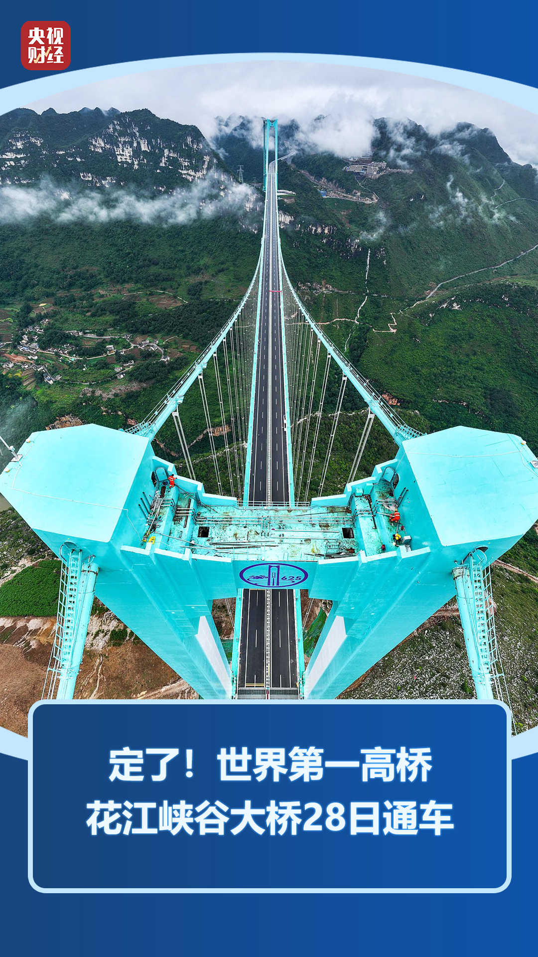 记者获悉,世界第一高桥——花江峡谷大桥将于9月28日正式建成通车。花江峡谷大桥是贵州六枝至安龙高速公路的关键控制性工程,全长2890米,主桥跨径1420米,桥面到水面高度625米,主桥跨径居山区桥梁跨径世界第一、桥梁高度居世界第一,被称为“横竖”都是世界第一。