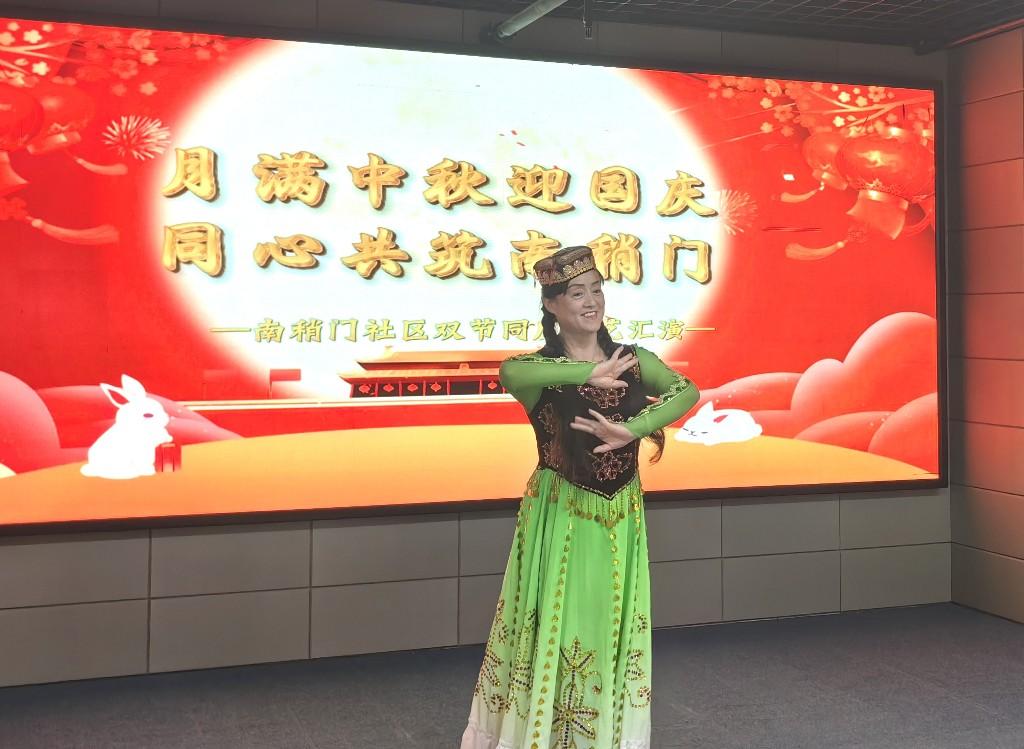 三秦都市报-三秦网讯(记者 成东丽)9月26日上午,西安市碑林区长安路街道南稍门社区以“月满中秋迎国庆,同心共筑南稍门”为主题,在大话南门壹中心1403室举办双节同庆文艺汇演,将团圆温情的美好愿景,融入这场邻里共欢的盛会之中。
