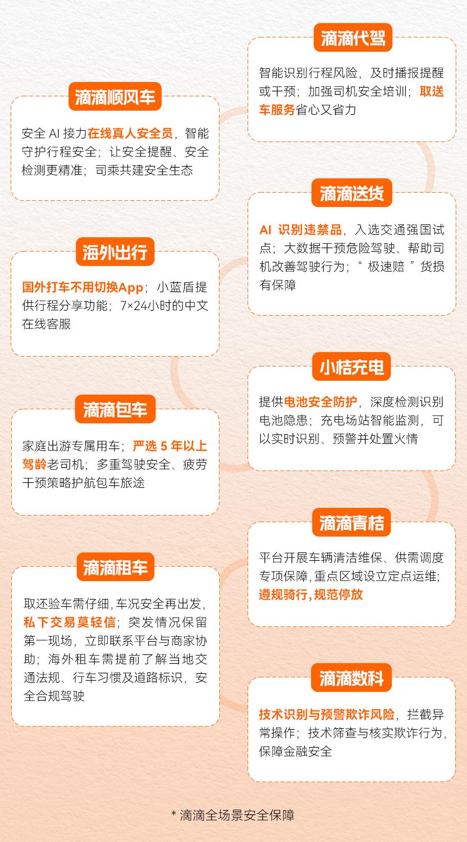 假期期间,滴滴各业务线、各区域、安全、客服、应急办等团队,都会结合节假日出行特点加强全天候值班部署,并针对近期出现的台风等极端天气制定风险防范方案,确保司乘遇到异常情况时能高效响应、妥善处理。同时与警方紧密协作,尽最大努力保障紧急情况下用户的安全与合法权益。