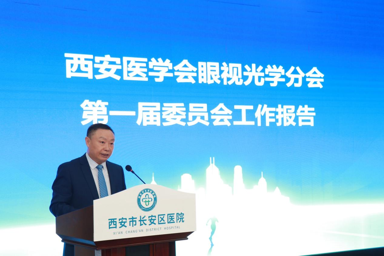 西安市长安区医院(西安市第十二医院)院长、眼视光学分会第一届主任委员张红兵作了上一届眼视光学分会工作总结。回顾了分会在组织建设、科普宣传、学术交流与继续教育等方面取得的积极进展,以及分会在推动眼视光学发展和守护群众眼健康方面所作的积极贡献。