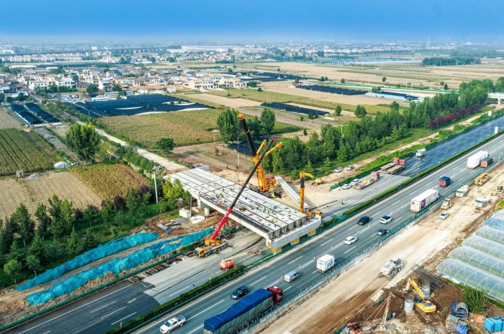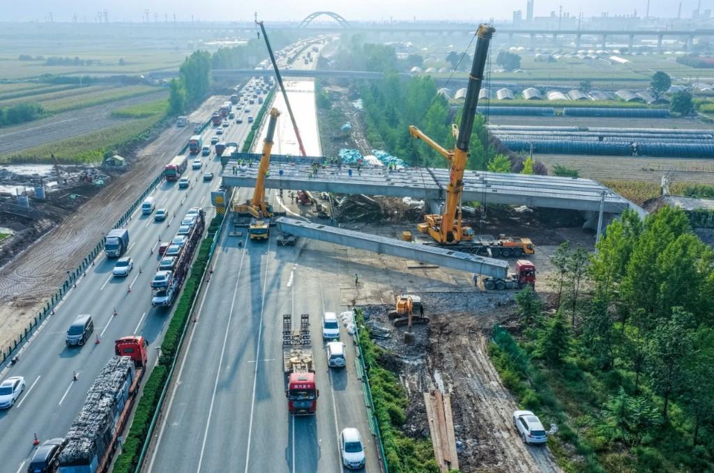三秦都市报-三秦网讯(记者 谢斌)9月26日,在两台500吨吊车的协同作业下,西兴改扩建项目跨连霍高速油张路天桥北半幅最后一片箱梁平稳落位,标志着顺利突破该项重大节点目标,为后续施工奠定了坚实基础。