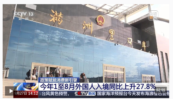 据统计,今年1至8月,外国人入境5126.8万人次,同比上升27.8%。我国服务零售额同比增长5.1%。数字消费、绿色消费、健康消费等新型消费持续壮大,入境消费持续扩大。截至8月底,全国离境退税商店数量突破1万家,前8个月退税商品销售额同比增长97.5%,享受退税人数同比增长2.5倍。