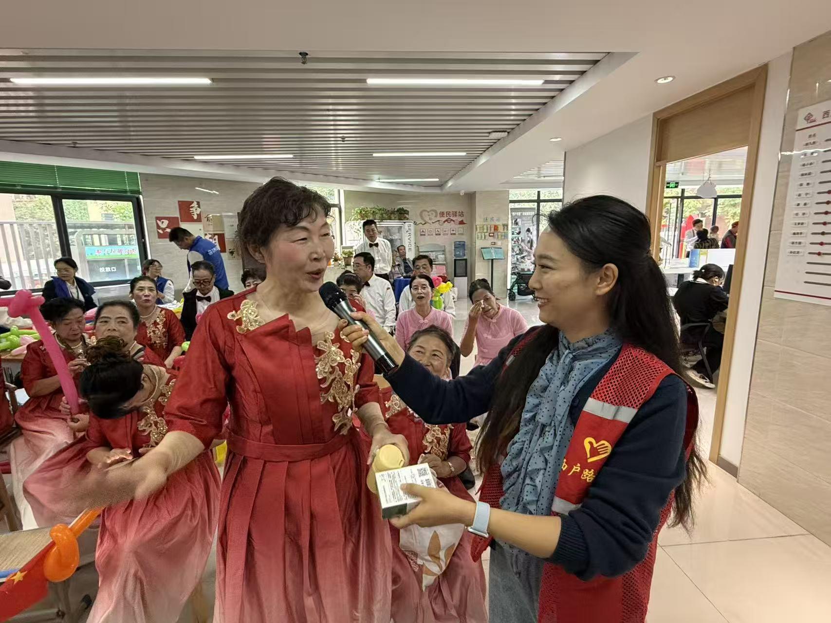 除了精彩的文艺表演,活动还融入互动环节,让节目氛围更加浓厚。现场穿插了垃圾分类、国庆节、体育健身等知识问答,既考验了居民对各种文化的了解,又深化了大家对爱国情怀的认知,居民们踊跃举手积极抢答,在趣味互动中收获知识。