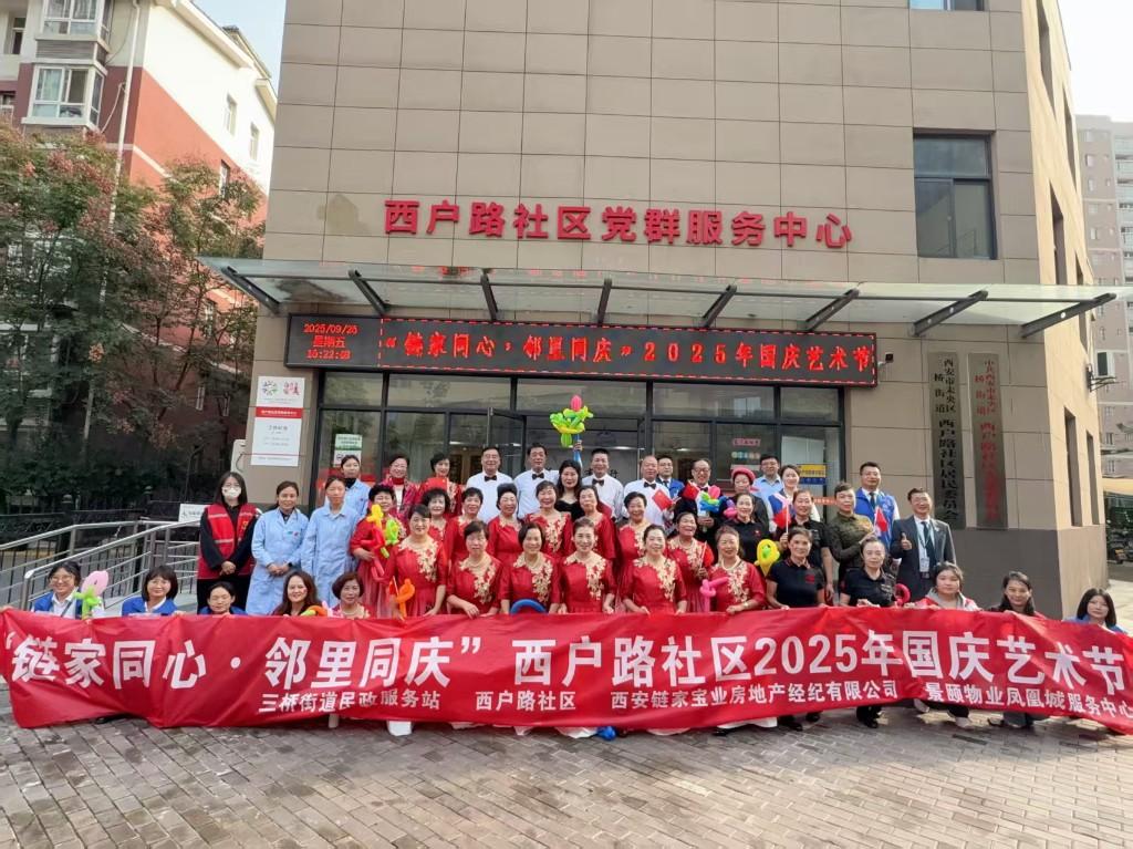 三秦都市报-三秦网讯(记者 代泽均)9月26日,西户路社区联合三桥街道民政服务站、西安链家、景颐物业在凤凰城小区举办“链家同心,邻里共庆”国庆节文艺汇演。社区自组织登台献艺,用歌声、舞蹈与欢笑,共绘家国团圆的美好画卷。