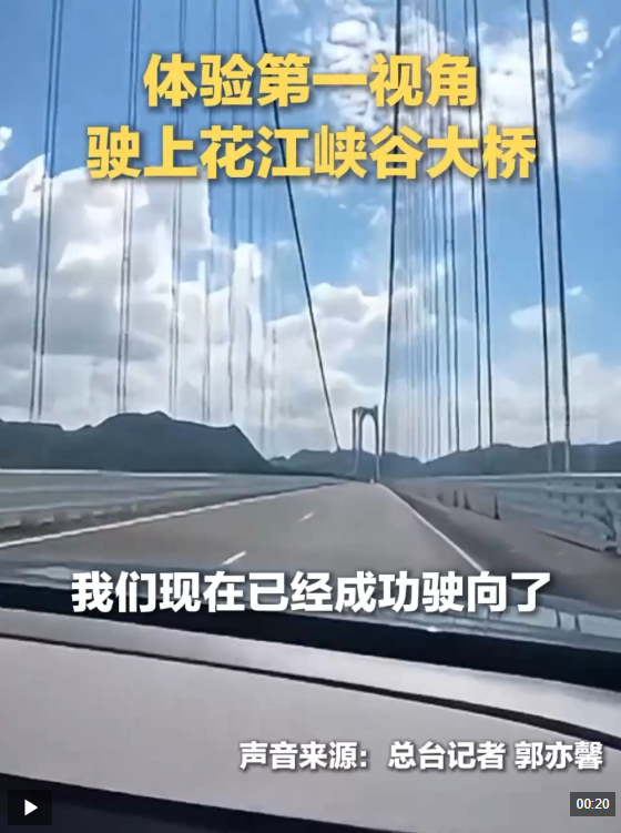 △第一视角驶上花江峡谷大桥,感受“横竖都是第一”的基建奇迹。