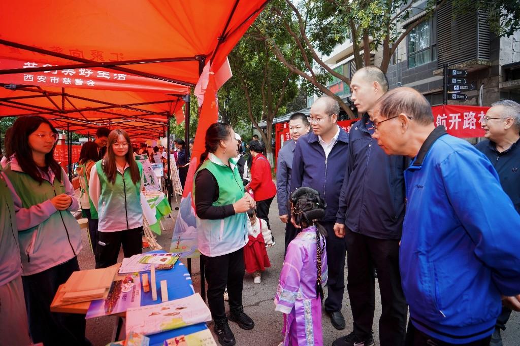 三秦都市报-三秦网讯(刘倩 记者 姬娜)9月27日,由西安市民政局、市委社会工作部、共青团西安市委指导,西安市慈善会主办,长安区韦曲街道办事处、航开路社区、陕西青年社会组织培育发展中心承办的“中华慈善日”“西安慈善月”进社区主题活动在西安市长安区韦曲街道航开路社区“青兜兜”公益市集门店及黄河小学礼堂举行。