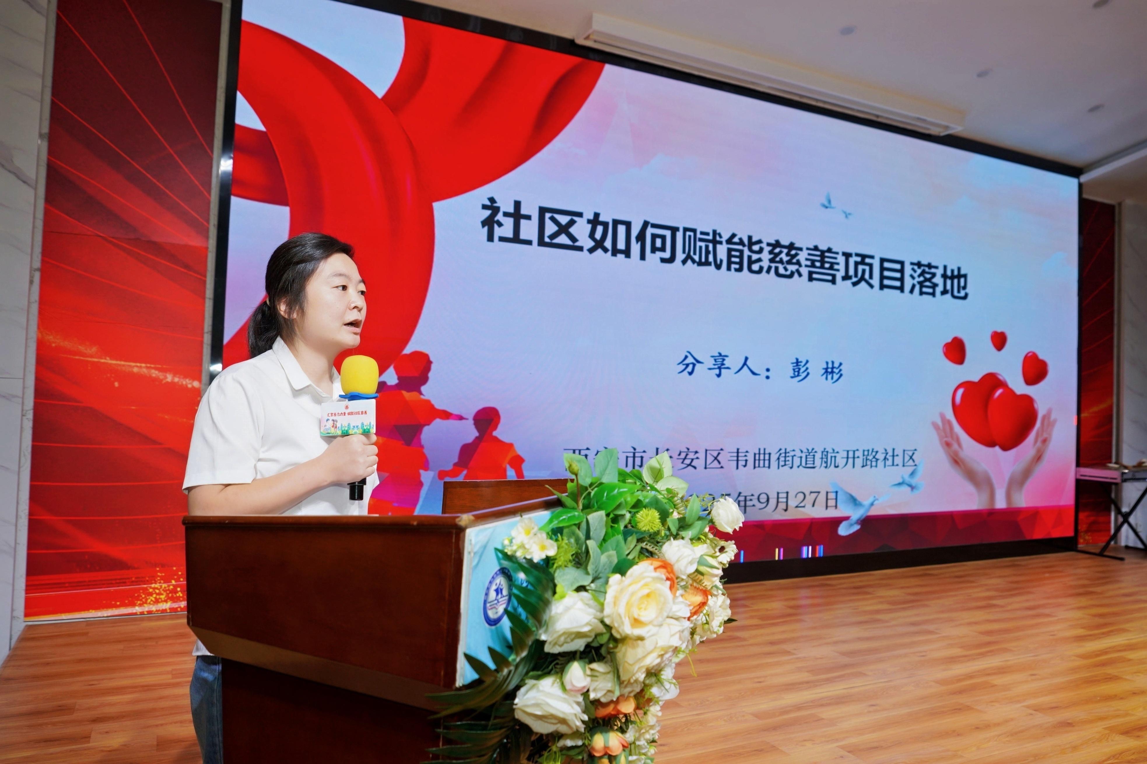 8:55—9:15,两场干货满满的经验分享把气氛推向高潮。陕西青年社会组织培育发展中心主任张小娟以《“青兜兜”模式的探索与实践》为题,用“一张慈善地图、三本需求台账、五类资源清单”总结社区慈善空间标准化运营心得;航开路社区党委书记兼居委会主任彭彬抛出“社区如何赋能慈善项目落地”的三把钥匙——制度性互信、共享式治理、在地化赋能,赢得掌声连连。