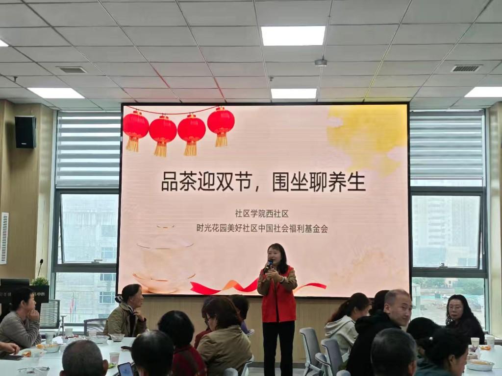 三秦都市报-三秦网讯(记者 王嘉)9月28日上午,西安电子城街道社区学院西社区联合中国社会福利基金会时光花园美好社区以及爱心商户,举办以“品茗迎双节,围坐聊养生”为主题的健康茶话会,将民生关怀融入节日氛围,为辖区居民送上一份“双节健康礼”。