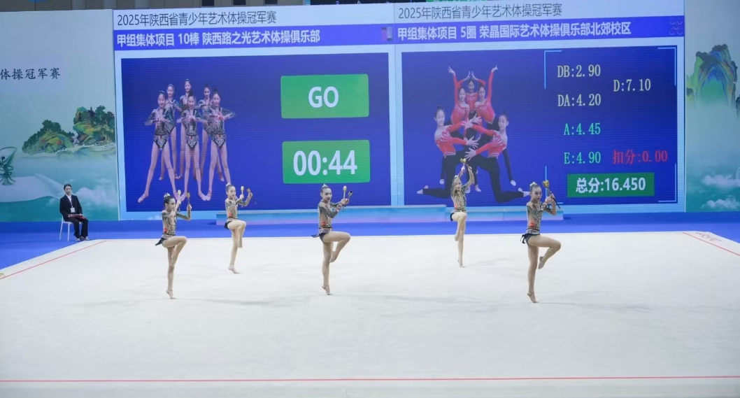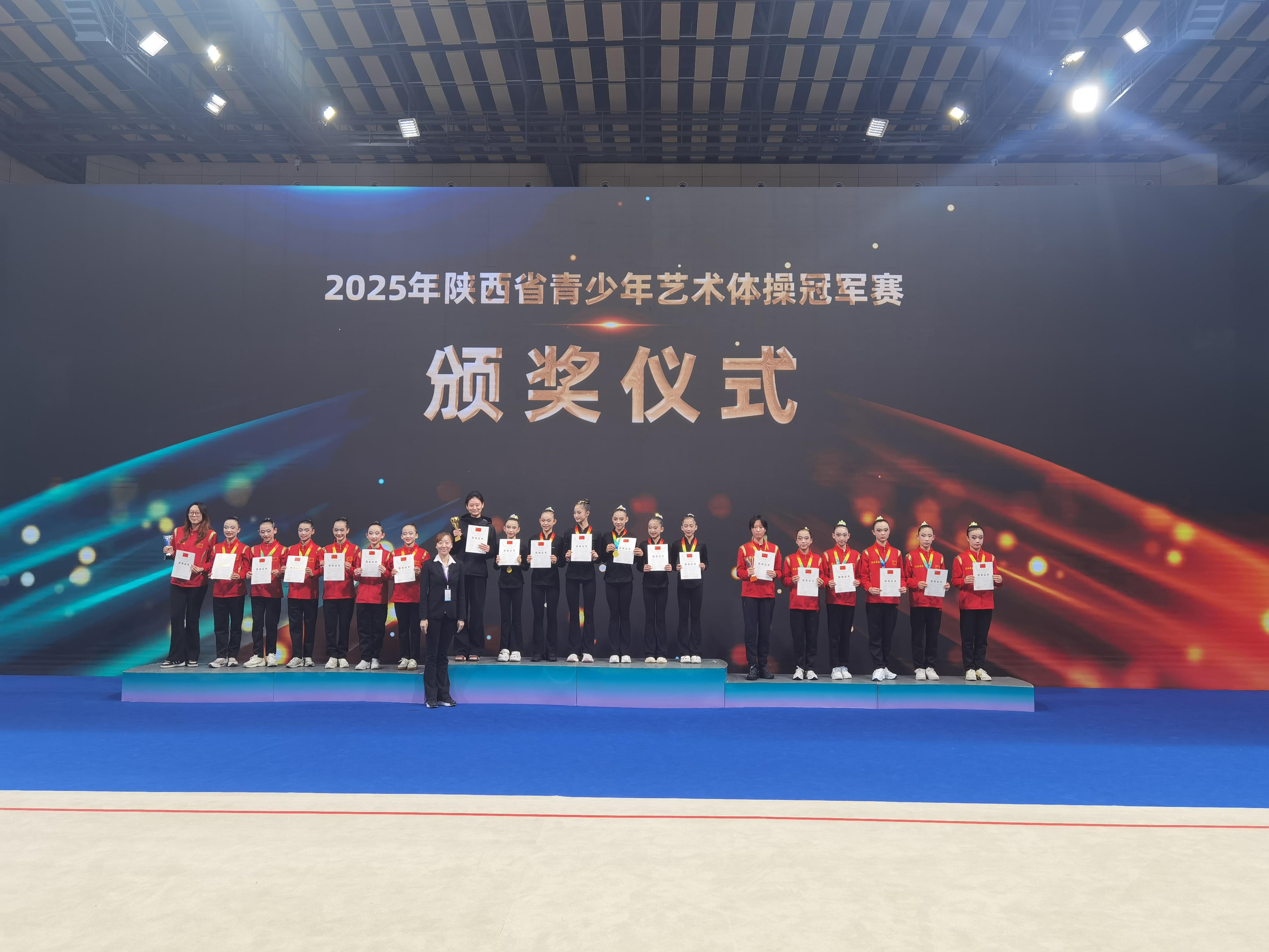 三秦都市报-三秦网讯(记者 王战荣)9月28日,为期两天的2025年陕西省青少年艺术体操冠军赛在铜川体育馆圆满结束,共有来自省内13支代表队的近200人参加。