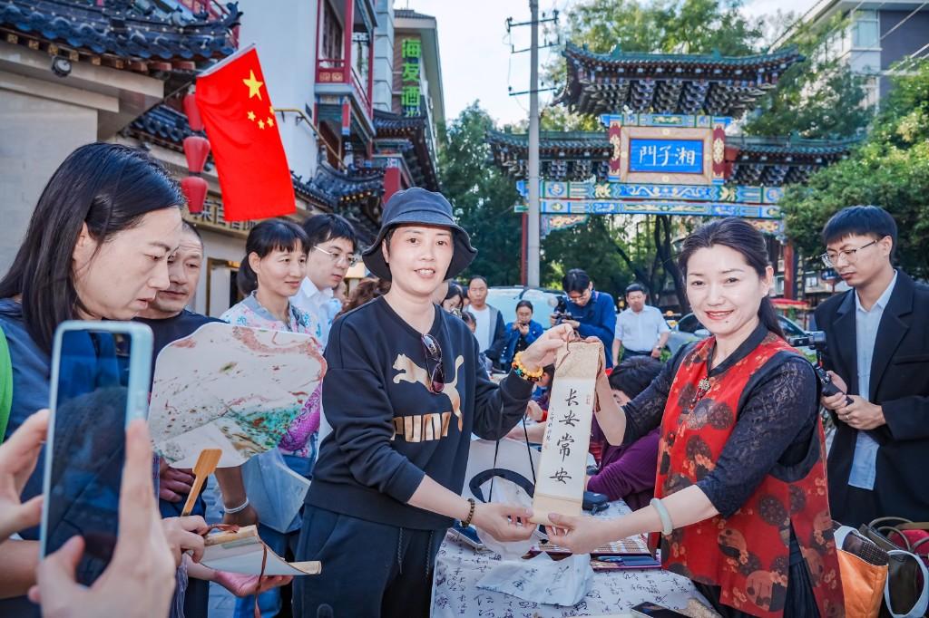 三秦都市报-三秦网讯(记者 成东丽)9月29日下午,由西安市碑林区委宣传部指导,西安市碑林区文化和旅游体育局、西安市碑林区文学艺术界联合会、西安市碑林区南院门街道党工委办事处联合主办的碑林区“庆国庆·迎中秋”主题活动在此热闹开启,近三小时的沉浸式文化体验,让市民游客在非遗的独特魅力里品味传统,在家国的浓厚情怀中定格团圆,留下一段难忘的双节记忆。