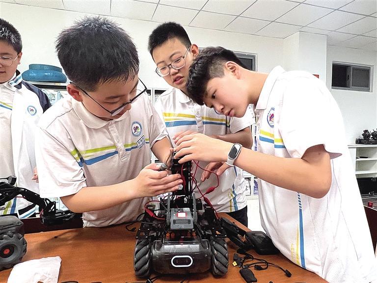 9月12日,在延安市新区第一中学的人工智能社团活动室,学生在修理模型。 本报通讯员 方大燕摄