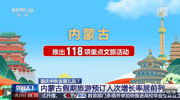 活动覆盖多元消费场景,既有民俗文化展演等传统文化体验项目,还包含赛马、徒步大赛、越野赛等动感赛事,更不乏灯光秀、音乐会、文艺演出等视听内容。数据显示,截至9月27日,内蒙古假期旅游预订人次增长率位居全国前列。