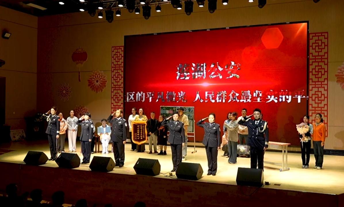 平凡之光,汇聚成星河。情景讲述《平凡之光》由全国公安机关爱民模范郝世玲、北关派出所社区民警乔彩虹、桃园路派出所社区民警孟江卫、土门派出所社区民警陈卫红与民辅警、社区群众共同演绎,深情展现了社区民警扎根基层、用脚步丈量民意、以真情化解民忧的动人故事。这正是莲湖公安深化“警社共治”模式,将社情民意“三本账”转化为服务清单,让平凡“微光”汇聚成守护平安璀璨“星河”的生动实践;舞蹈《不忘初心》表达了公安民警不忘初心、接续奋斗的赤子情怀。