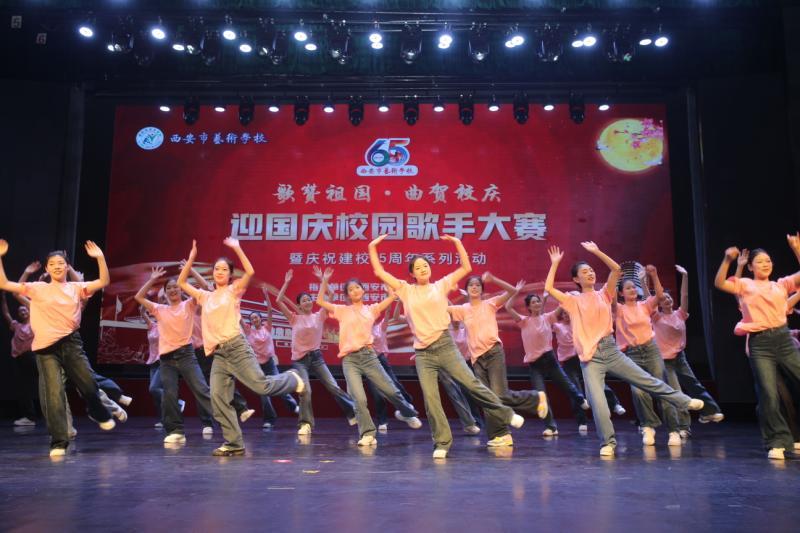 赛事间隙的助兴环节更显艺术底蕴与时代活力,由戏曲学科学子演绎的秦腔经典剧目的《三滴血》选段,重现秦腔艺术的情感张力与文化魅力,彰显学校戏曲学科的传承实力;诗朗诵《青春的信仰》诉说艺校学子对艺术的执着与对时代的担当;群舞《时代感》则以动感舞姿展现青年风采,呼应了学校“唯实创新、德艺双馨”的校训精神。西安市艺术学校相关负责人表示:“65载艺脉传承,我们以艺术为桥;国庆华诞将至,我们以歌声献礼。希望通过这场赛事,让学子在旋律中感悟家国情怀,让社会见证艺校育人的初心与成果。”