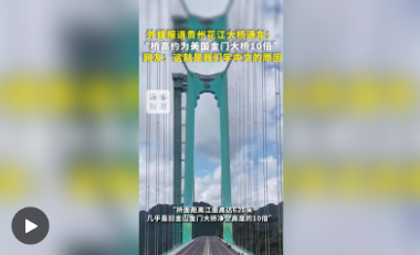 据半岛电视台9月28日引述中国媒体报道,贵州省花江峡谷大桥建成通车。报道称:“中国贵州省花江峡谷大桥横跨北盘江,为世界最高的桥梁。桥面距离江面高达625米,几乎是旧金山金门大桥净空高度的十倍”。该报道浏览量近20万,外国网友纷纷点赞评论:“这就是为什么近年来我们一直倡导学习中文”。