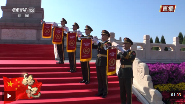 仪式现场,中国人民解放军军乐团小号手吹响《烈士纪念日号角》。