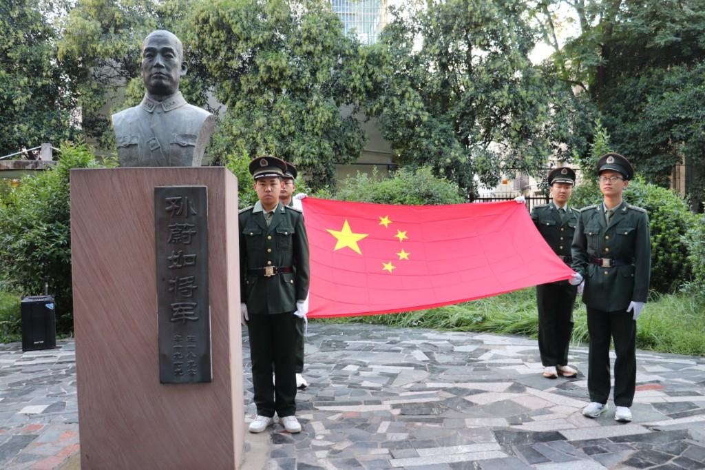 清晨的蔚园庄严肃穆,活动在雄壮的国歌声中拉开序幕。全体师生肃立,向国旗行注目礼。随后,全体人员为孙蔚如将军及所有革命烈士默哀一分钟,现场寂静无声,寄托无限哀思。