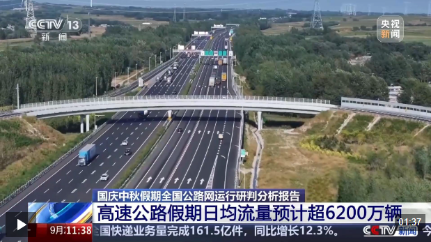 预计国庆中秋假期全国高速小客车日均流量约5650万辆,占总流量比例近九成,自驾出行比例较高。