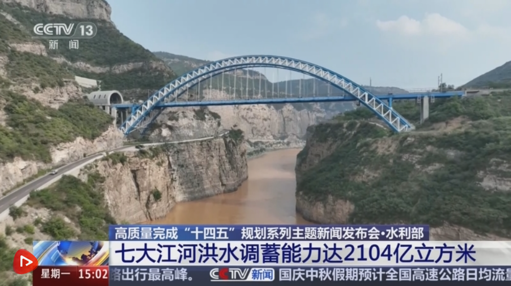 发布会上,水利部相关负责人表示,“十四五”时期,我国七大江河洪水调蓄能力达2104亿立方米,具备防御新中国成立以来最大洪水的能力。