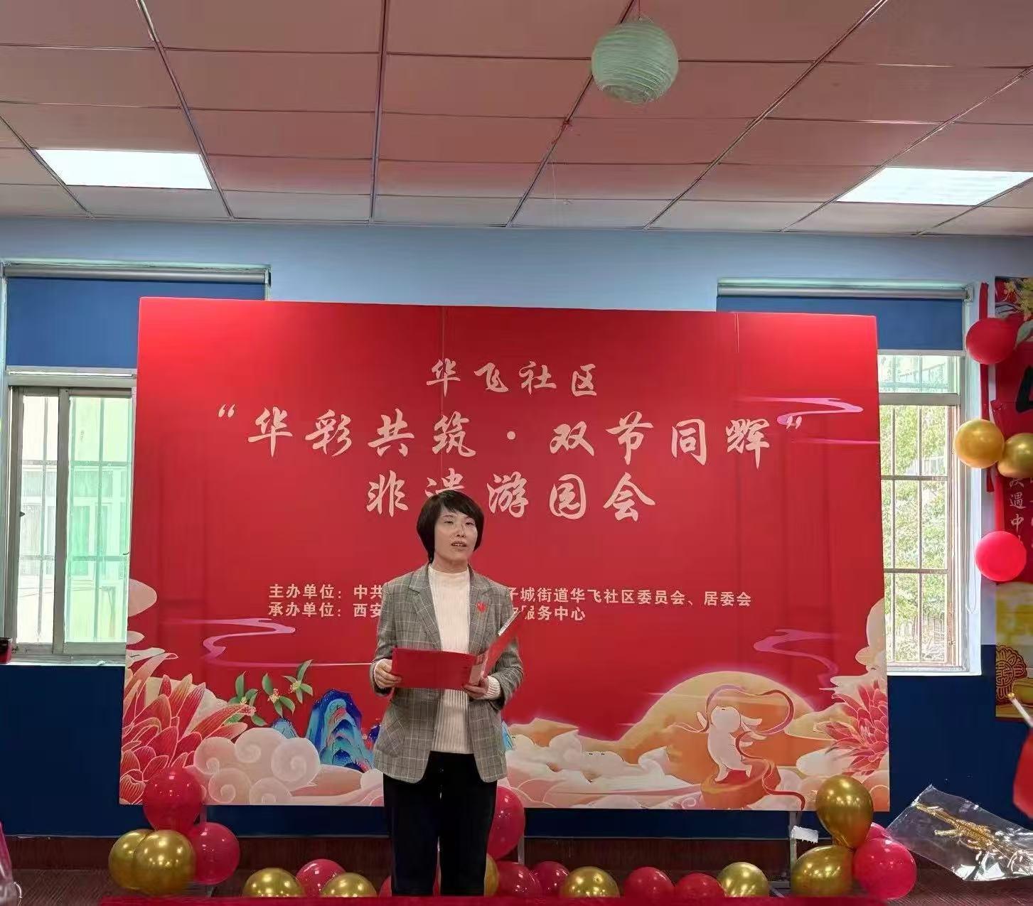 三秦都市报-秦闻讯(记者 成东丽)9月30日下午,西安市雁塔区电子城街道华飞社区在社区活动室开展了以“华彩共筑·双节同辉”为主题的双节同庆游园会。居民可在签到处打卡签到,抽取非遗活动体验券,参与现场的各项活动,现场设有国庆主题背景墙,适合拍照留念,记录节日瞬间。