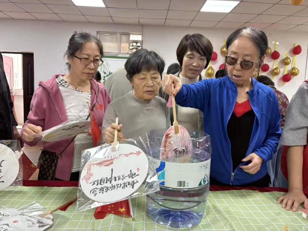 在非遗漆扇体验区,居民在专业人员的指导下自主使用各色颜料调配、亲手绘制中秋国庆主题的漆扇,体验传统非遗工艺,感受非遗,同时也可将成品带回家作为纪念。