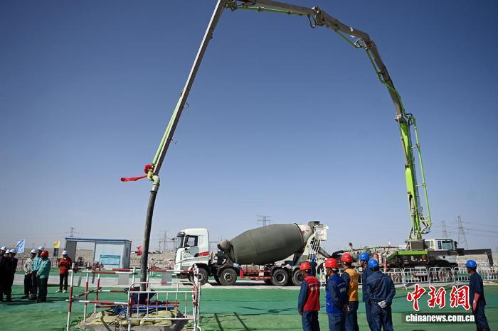 9月27日,若羌—羚羊750千伏输电线路工程(新疆段)进行首基铁塔基础浇筑。 马元 摄