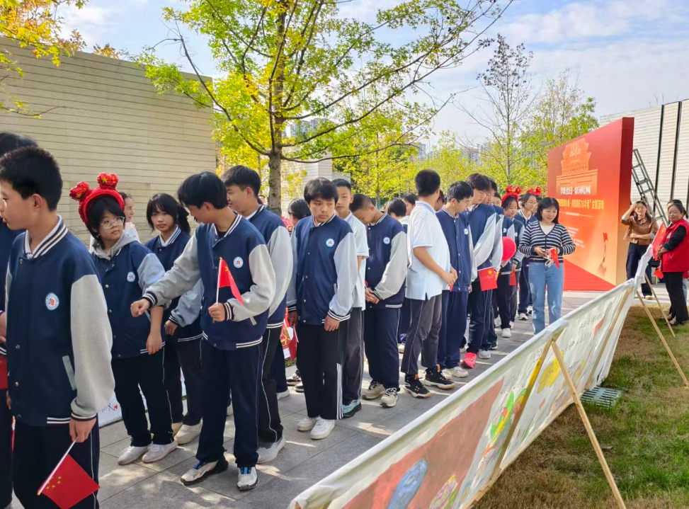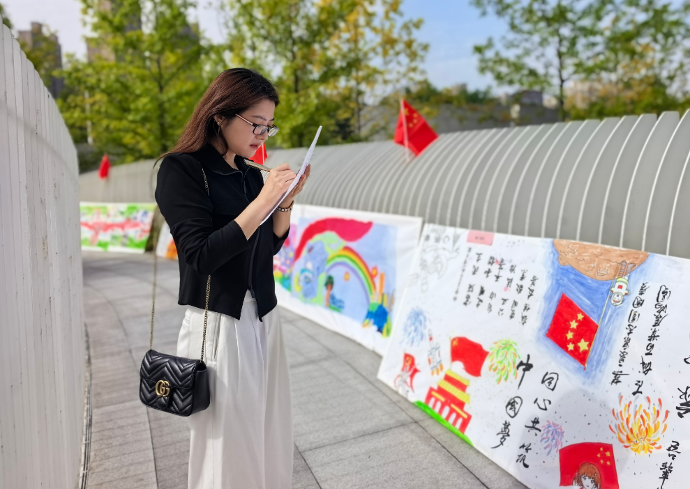 完成绘制的百米长卷经装裱后,在万科东望上樾西南角广场展出,吸引不少辖区居民纷纷驻足欣赏,交流感受。画卷中,历史与现实交织,传统与现代辉映:既有狼牙山五壮士的英勇身姿,也有脱贫攻坚战中的基层干部形象;既有神龙飞天的古典韵味,也有高铁飞驰的现代速度……一幅幅画面串联起中华民族从站起来、富起来到强起来的伟大飞跃,成为生动的“移动历史课堂”。