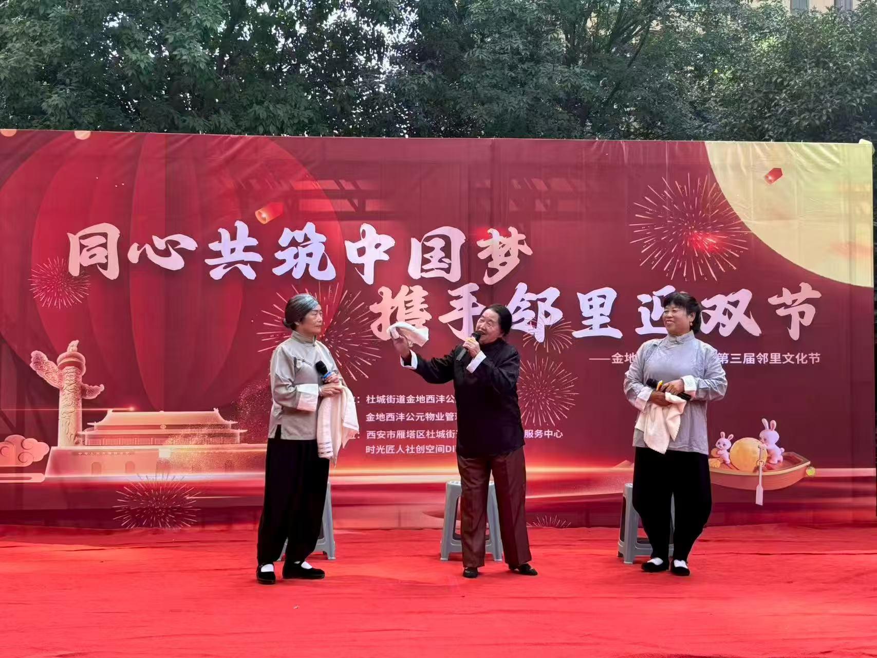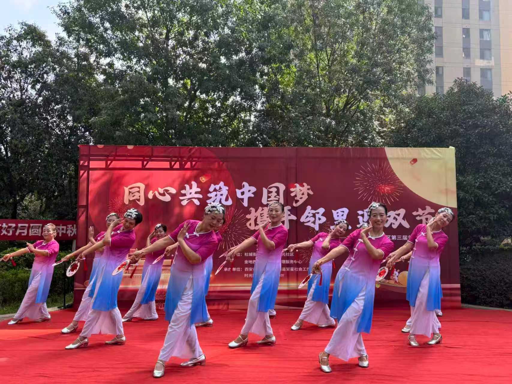 三秦都市报-秦闻讯(记者 代泽均)金秋送爽,万里河山披锦绣;丹桂飘香,一轮明月寄深情。当中秋的圆月遇上国庆的欢腾,家国同庆的喜悦便洋溢在每个人的心间。为了庆祝这美好的时刻,弘扬中华民族优秀文化,进一步满足广大群众多层次多方面精神文化需求,繁荣社区文化生活,加强居民思想道德建设,增强居民的社区凝聚力,营造浓厚的节日氛围,9月24日,杜城街道金地西沣公元社区与繁星社会工作服务中心携手金地物业管理服务中心举办“迎中秋·庆国庆”主题文艺汇演。左邻右舍欢聚一堂,用歌声传递祝福,用舞姿表达热爱,共同度过了一个温馨而难忘的佳节,此次演出吸引500余名居民驻足观看。