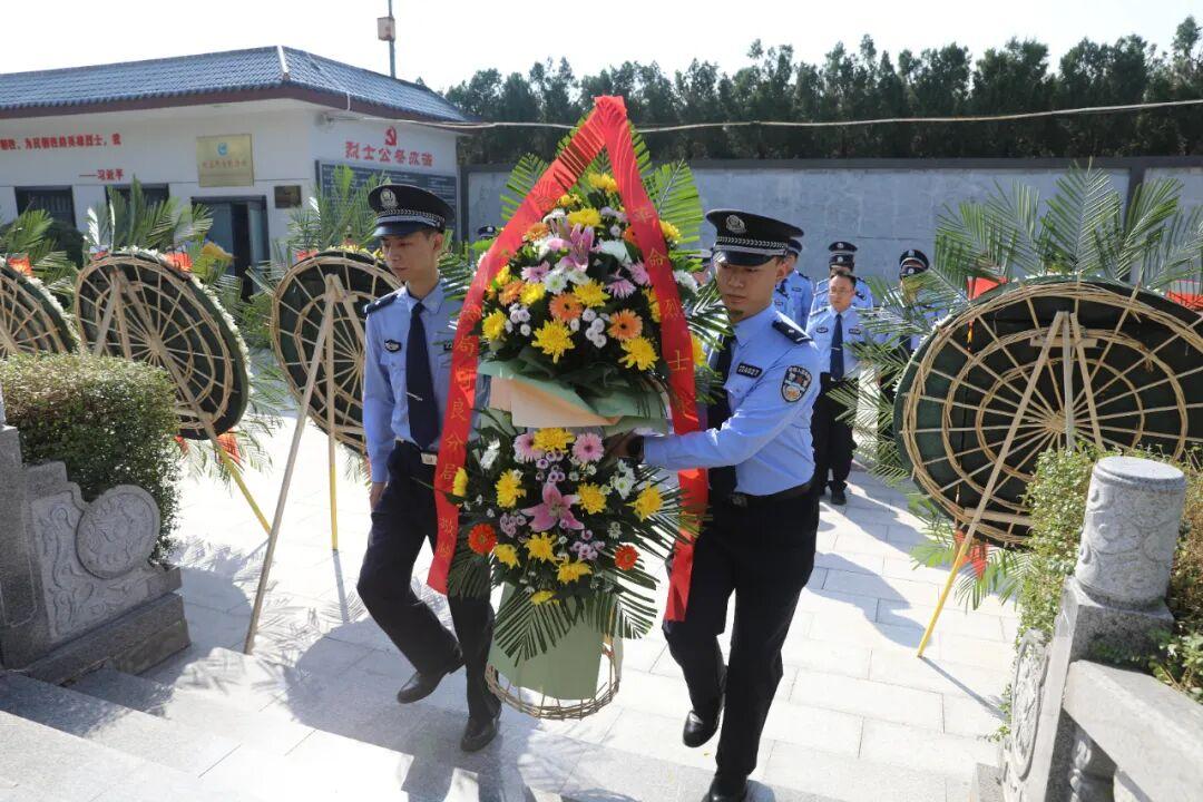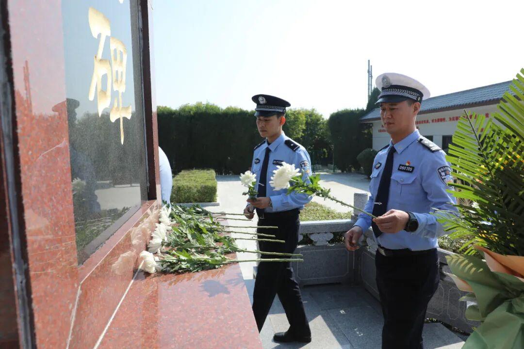 鲜花献英烈,哀思祭忠魂。上午10时许,参加祭扫活动的民警心怀敬意,整齐列队缓步走向革命烈士纪念碑,将花篮摆放在纪念碑基座上,分局政委薛刚为花篮整理缎带,全体民警脱帽肃立,向革命英烈行三鞠躬礼,随后依次瞻仰了革命烈士纪念碑,为英烈敬献鲜花,以此寄托对革命先烈的无限敬仰与深切怀念!