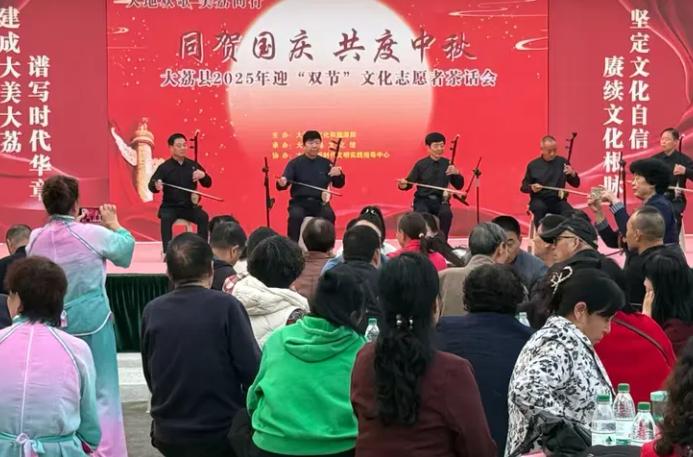 三秦都市报-秦闻讯(李世居 马华丽 记者 代泽均)9月29日,由大荔县文化和旅游局主办、文化馆承办、新时代文明实践指导中心协办的"同贺国庆 共度中秋"文化志愿者茶话会在县文化馆举行。来自全县各文化类协会、文艺社团、非遗工坊及传承人代表、文化志愿者欢聚一堂,以艺术之名共庆团圆佳节,以文化之美礼赞盛世华诞。本次茶话会旨在激励、团结文化工作者,围绕国家级关中文化生态保护区建设和大荔县委提出的“文化强县”建设,携手奋进,贡献文化力量。