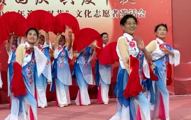 现场文艺爱好者表演了《舞动枣乡》。非遗互动环节《春江花月夜》古筝与朗诵的跨界演绎,将"春江潮水连海平"的古典意境与现代艺术表达相结合,带领观众穿越千年感受中秋文化的魅力, 朗诵《中华声音》通过声情并茂的演绎,展现祖国山河的壮丽画卷,传递身为中国人的自豪与骄傲。群舞《江山》以大气的编排将活动推向高潮,演员们用优美舞姿抒发对伟大祖国的深情祝福,展现新时代文化工作者的精神风貌等节目呈现给大家。互动交流中,非遗代表性传承人与文化志愿者围坐畅谈,分享技艺传承的故事、文化服务的心得。