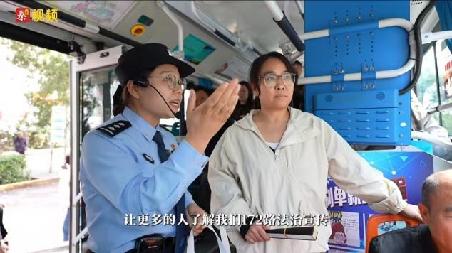 公交轨道公安局民警在车厢内开展现场教学,刚买菜回来的乘客李大爷仔细阅读防诈骗指南:“这些案例都是我们老年人经常遇到的,坐趟车还能学法律知识,真不错!”