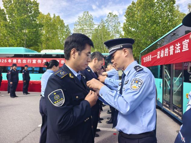 “我们将以‘流动的普法宣传站’为抓手,把法治服务送到乘客身边,让群众的每一趟公交出行都成为一次安全普法体验。”公交轨道公安局民警王成在表态发言中说。