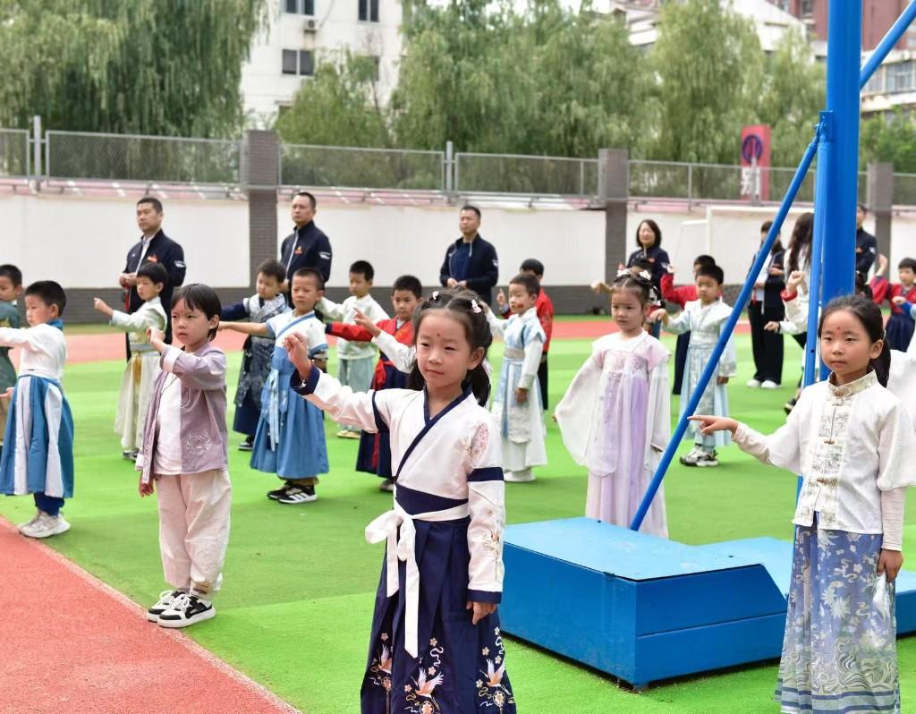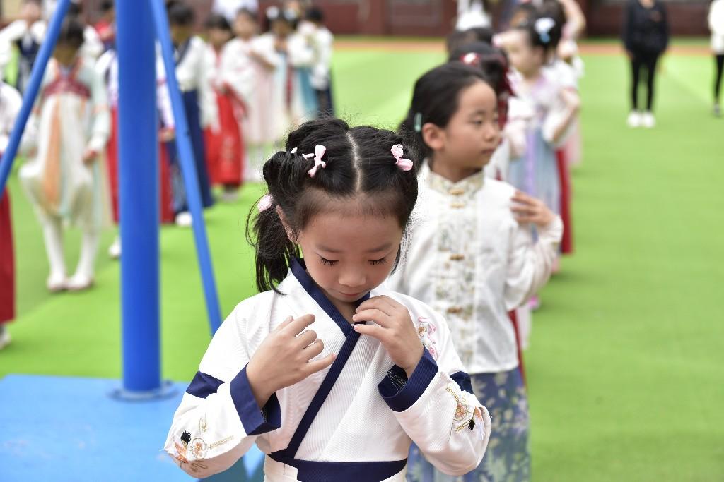 仪式上,校长杨艳娜率先“击鼓明志”,三通鼓声分别寓意“挑战自我”“焕然一新”和“热爱学习”,激励孩子们勇敢追梦。随后,在“正衣冠”环节,学生们认真整理衣冠,初步体验礼仪规范。