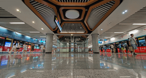 高铁抵达乘客换乘地铁2号线,可通过换乘大厅实现垂直换乘,无缝衔接。