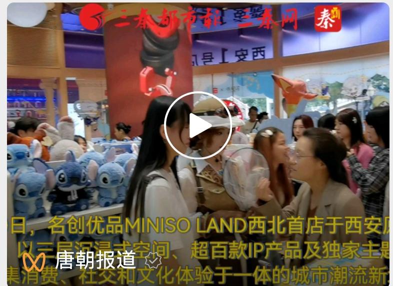 三秦都市报-三秦网讯(记者 唐明军 实习生 许佳欣)9月30日,名创优品MINISO LAND西北首店于西安原力场正式开业。该店以三层沉浸式空间、超百款IP产品及独家主题场景,迅速成为集消费、社交与文化体验于一体的城市潮流新地标。